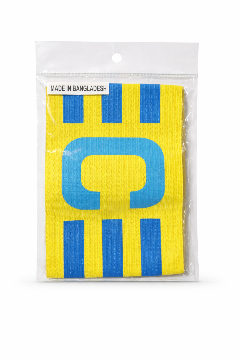 The vibrant yellow and blue color combination ensures high visibility, so teammates, referees, and spectators can easily recognize the captain during the game.
