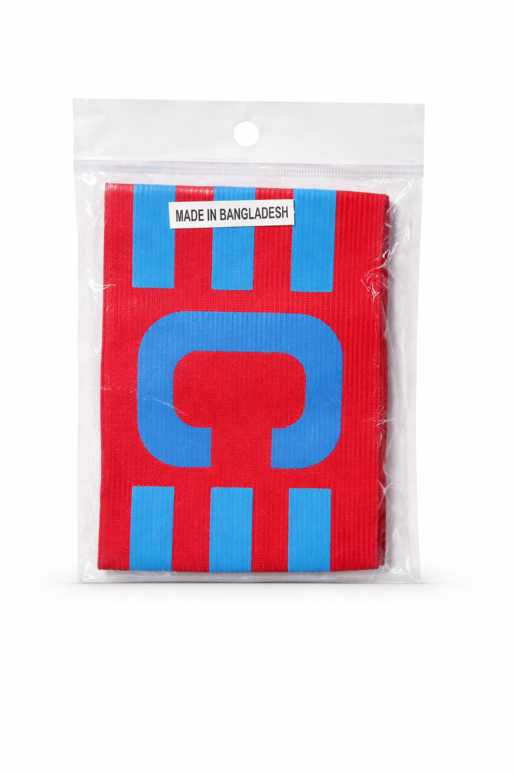The vibrant red and blue color combination ensures high visibility, so teammates, referees, and spectators can easily recognize the captain during the game.