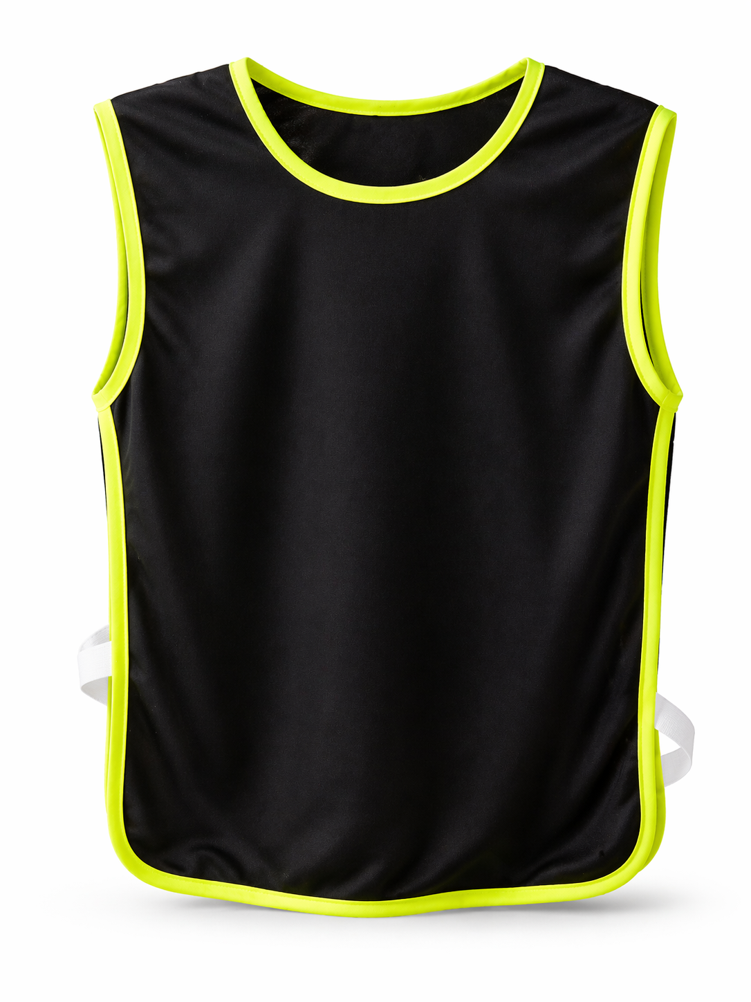 | junior training bibs | Black with neon trim, Red with neon trim, Yellow with black trim |